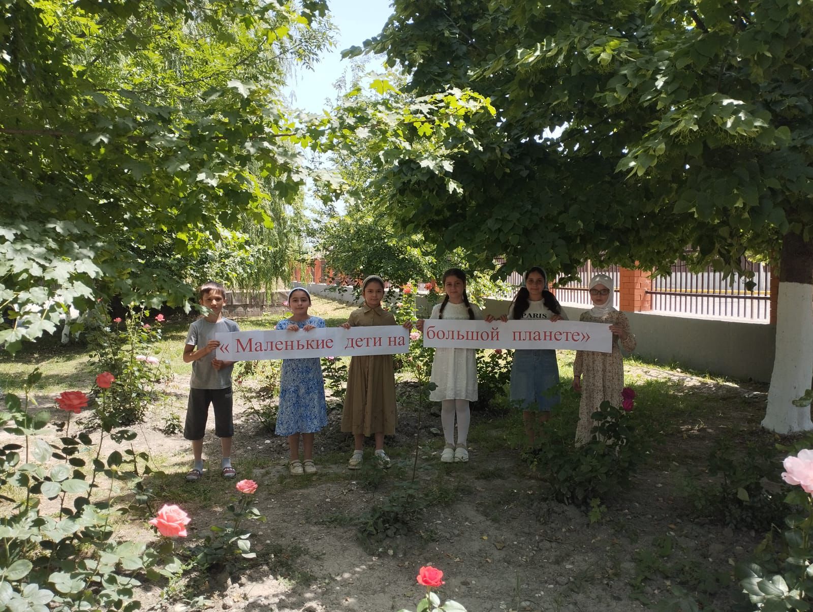 1- июня Международный день защиты детей-Праздник счастливого детсва!В рамках мероприятий,приуроченных к этой дате ребята МБОУ "НОШ с. Беркат-Юрт"стали участниками акции "Маленькие дети на большой поланете"