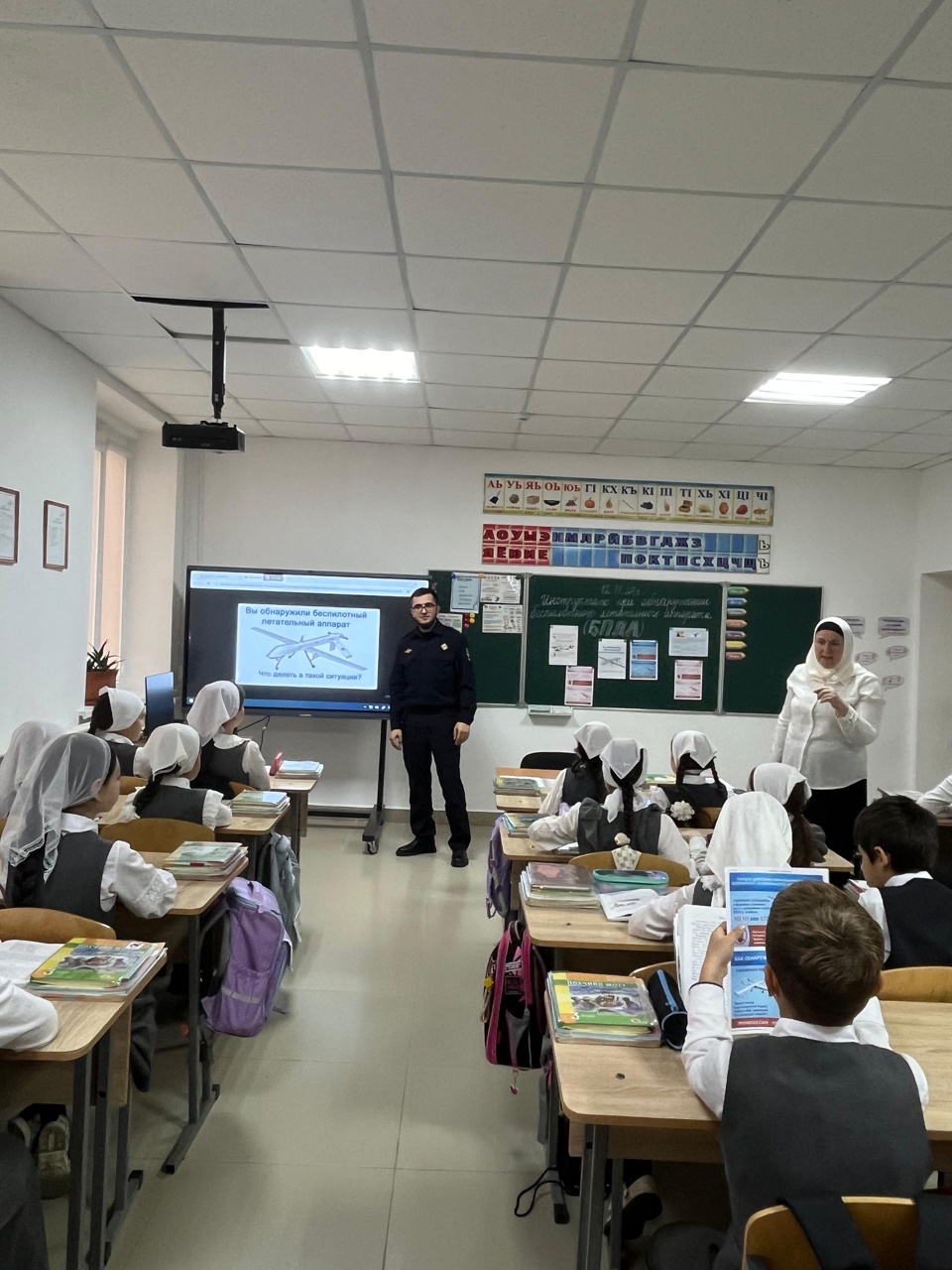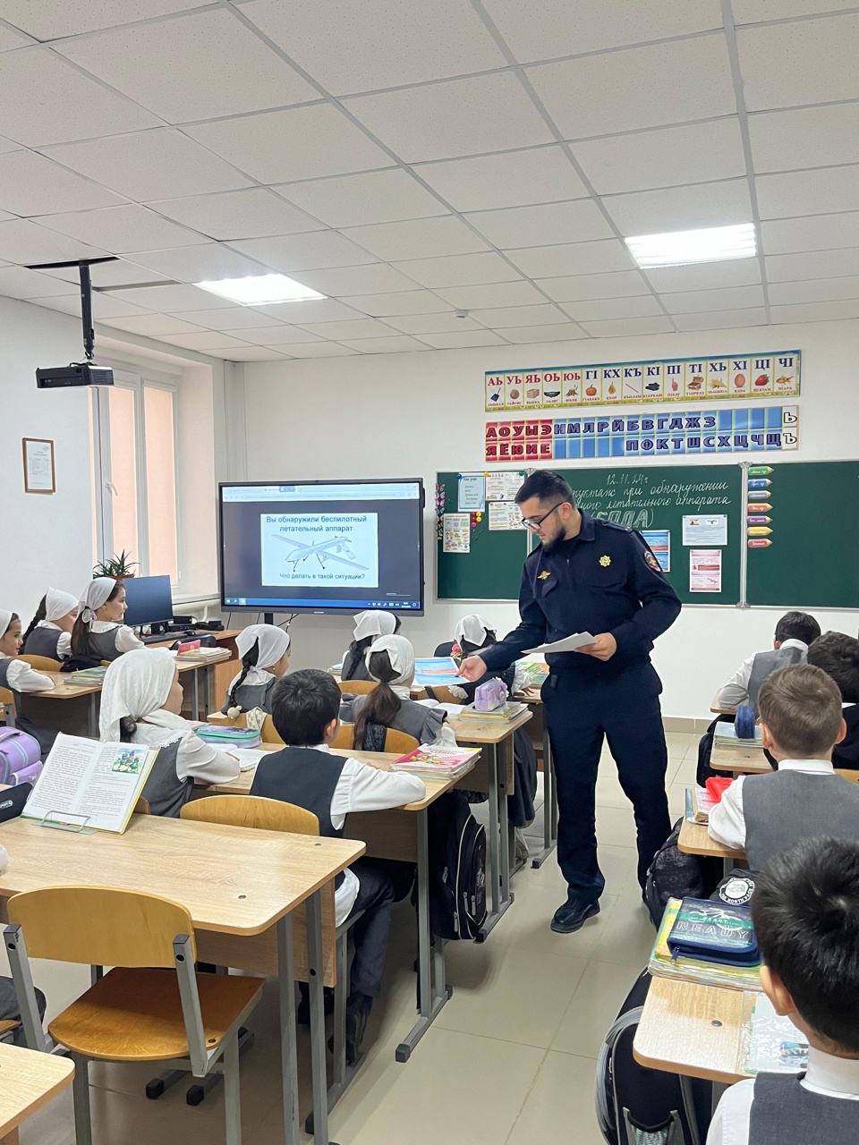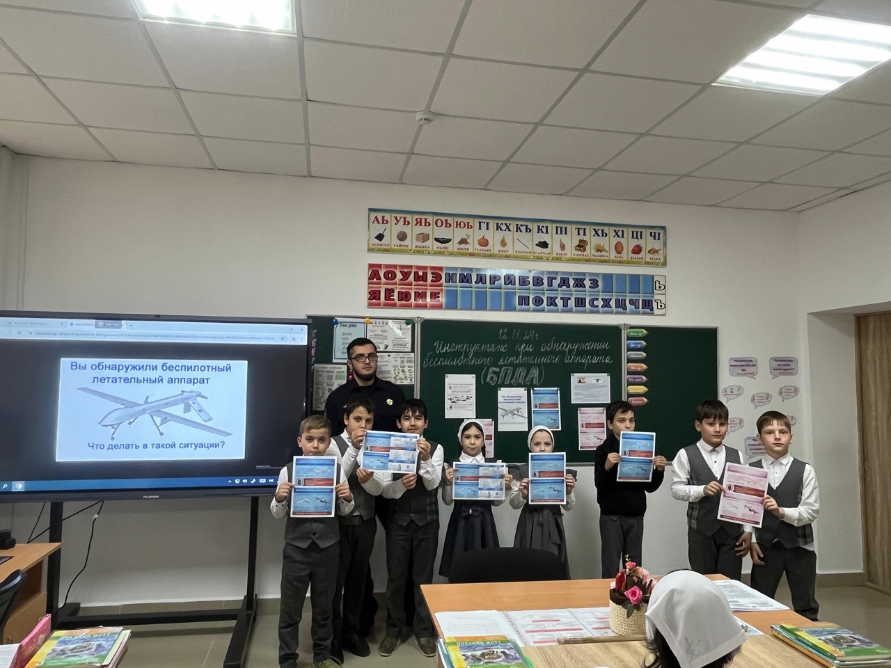 12.11.2024В МБОУ «НОШ с. Беркат-Юрт Грозненского района» ЧР 12.11.2024г. инспектором ОПДН ОМВД России по Грозненскому району, лейтенантом полиции Замхаджиевым Р.К., совместно с завучем по ВР Болтаевой З.А., был проведен во всех классах с обучающимися информационный инструктаж о порядке действия при обнаружении беспилотных летательных аппаратов в непосредственной
