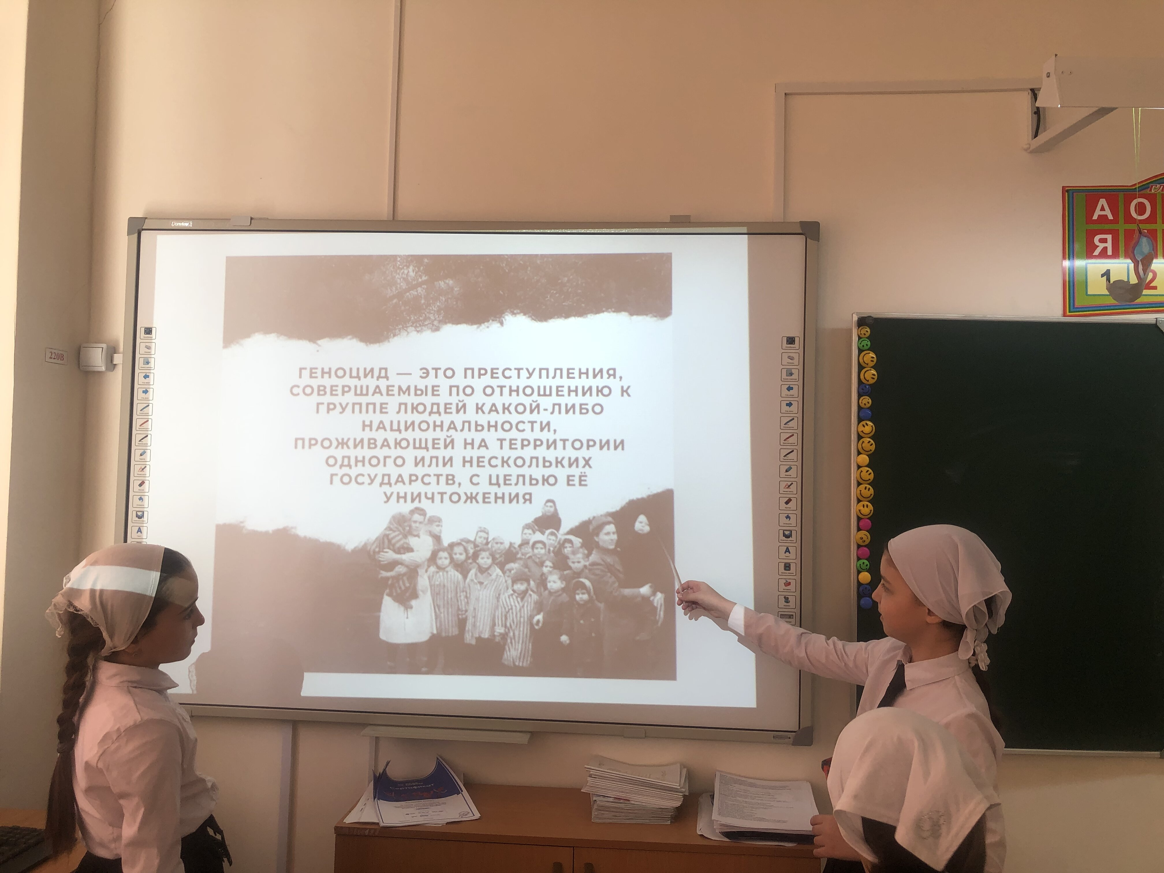 19.04.202519 апреля 2025г. в рамках реализации национального проекта «Образование» в МБОУ «Курчалоевская СШ 2» провели мероприятие на тему “ День памяти о геноциде советского народа нацистами и их пособниками в годы Великой Отечественной войны”, среди учащихся начального звена. Организатором выступила советник директора по воспитанию и взаимодействию с детскими общественными объединениями Эльмурзаева Мадина Хожхамедовна и учитель истории Абуев Ислам Казбекович Этот день направлен на сохранение памяти о жертвах Холокоста в советском Союзе и подчеркивает важность уважения к человеческой жизни и достоинству. Он призывает к объединению усилий общества, государства международного сообщества в борьбе с ненавистью, расизмом, ксенофобией и другими формами нетерпимости.День единых действий в память о геноциде советского народа нацистами играет важную роль в сохранении памяти о жертвах Холокоста в Советском Союзе и призывает к объединению усилий общества, государства и международного сообщества для борьбы с ненавистью, расизмом, ксенофобией и другими формами нетерпимости.Ребята узнали много нового о своей родины, что перелил свой народ в самые тяжёлые времена. Подчеркнули важность «Дня единых действий в память о геноциде советского народа нацистами» как способа сохранения памяти о страшной трагедии Холокоста в Советском союзе и призывают к действиями для предотвращения подобных ужасов в будущем.