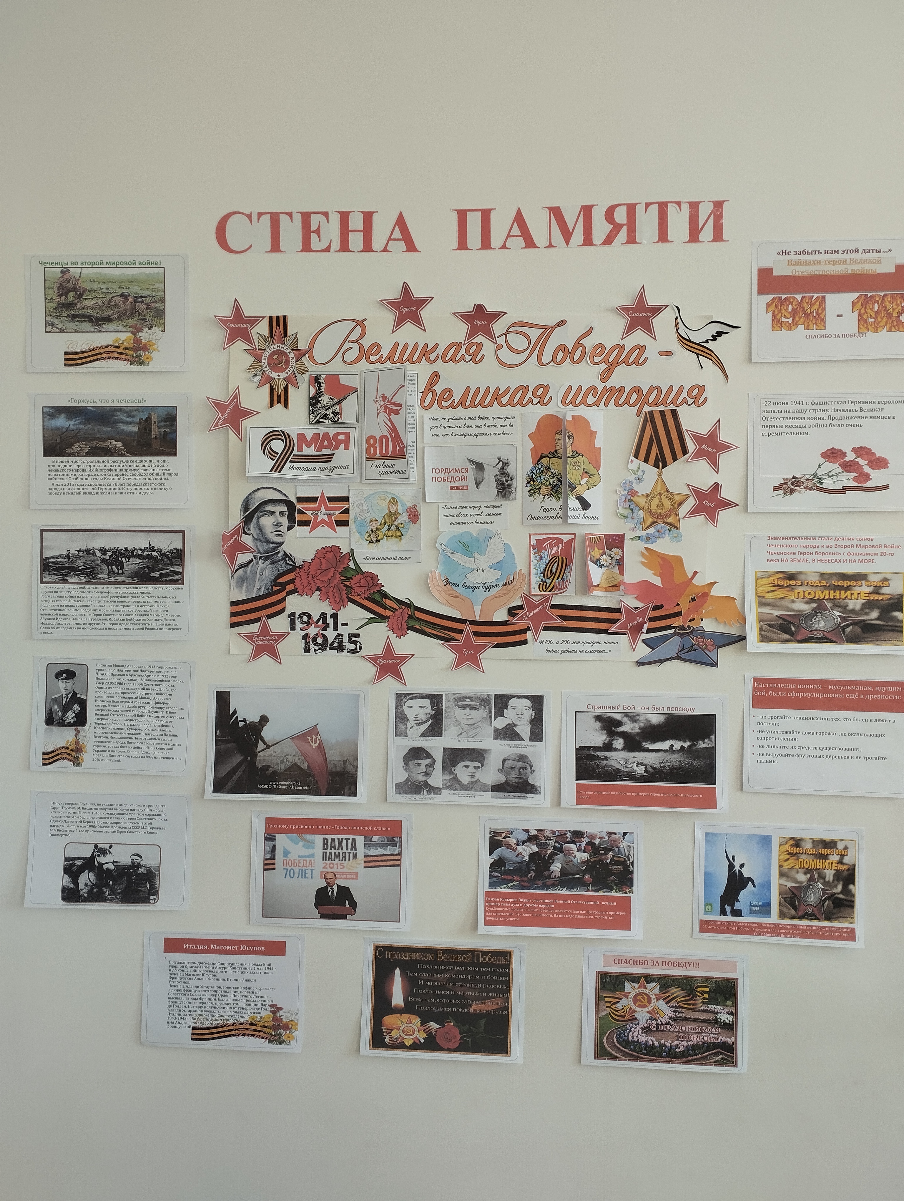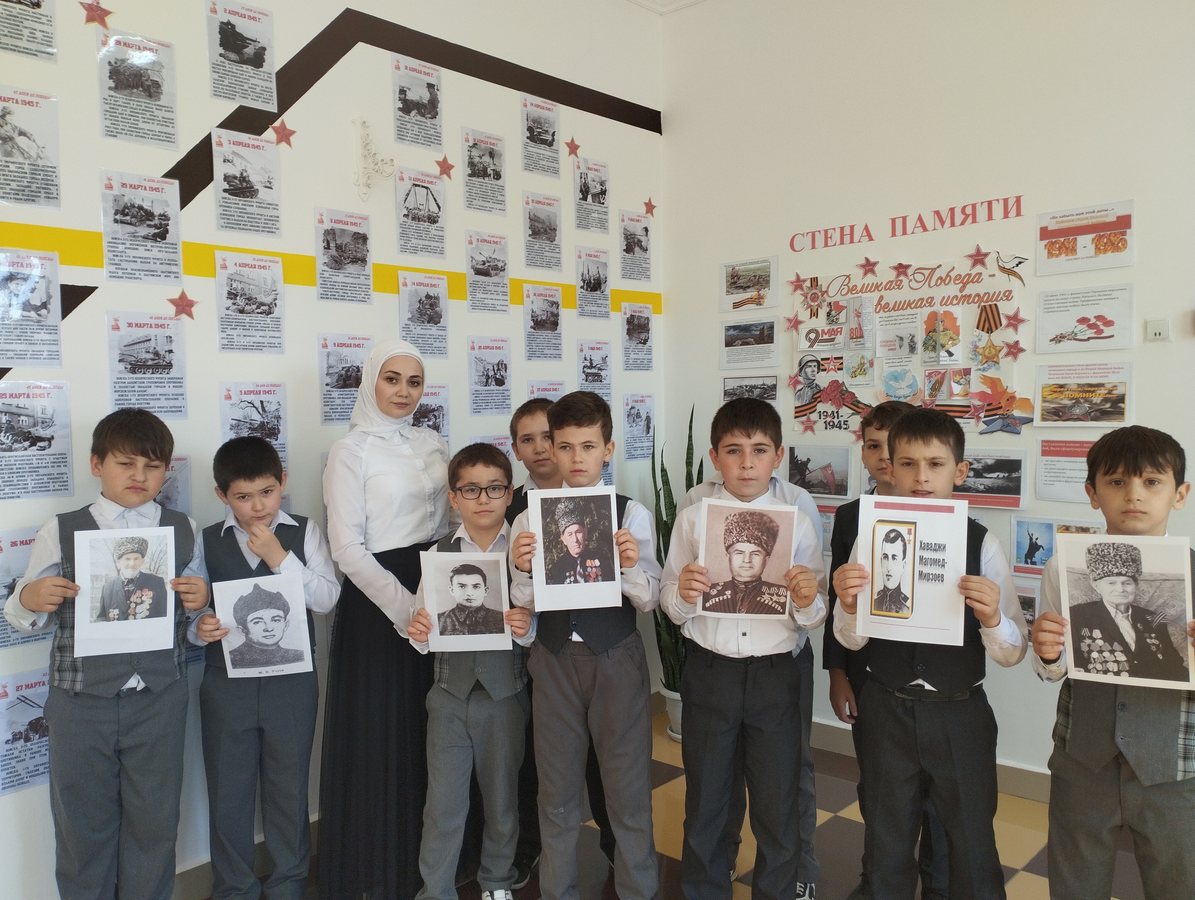 В рамках празднования 80-летия Победы в Великой Отечественной войне в МБОУ «НОШ с,Беркат-Юрт» прошла Всероссийская акция «Бессмертный полк» – Стена Памяти. Учащиеся и учителя почтили память павших️ и принесли фотографии своих родственников, участников Великой Отечественной войны.